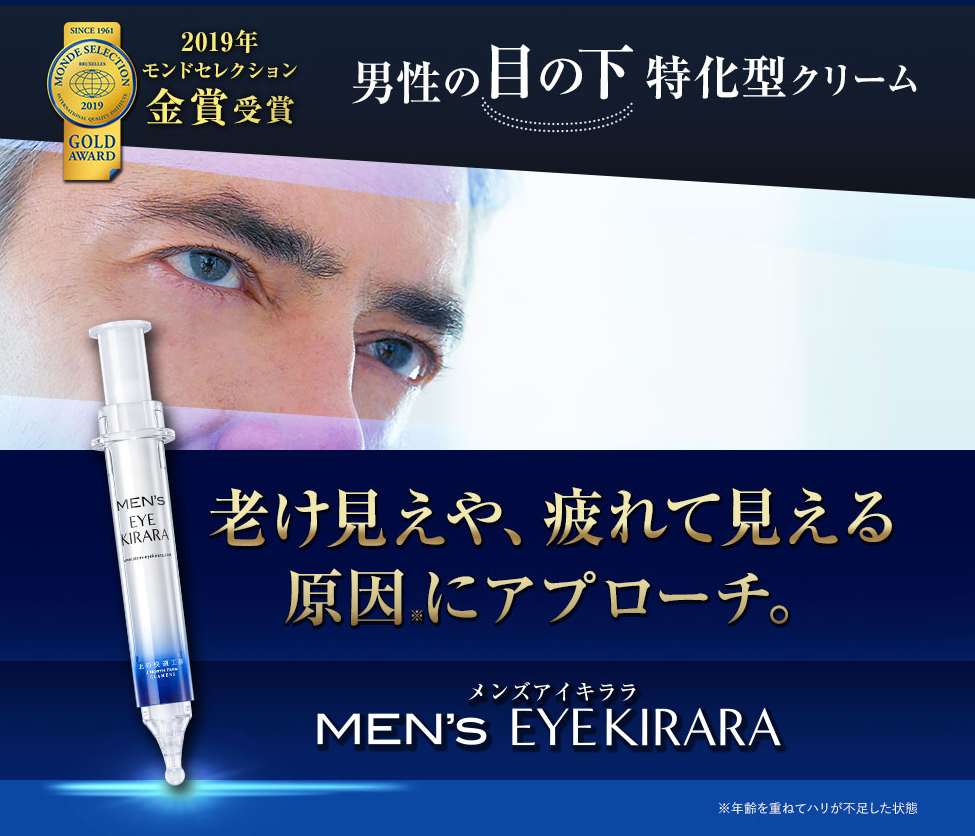 男性の目の下のたるみをケアする【メンズアイキララ】。